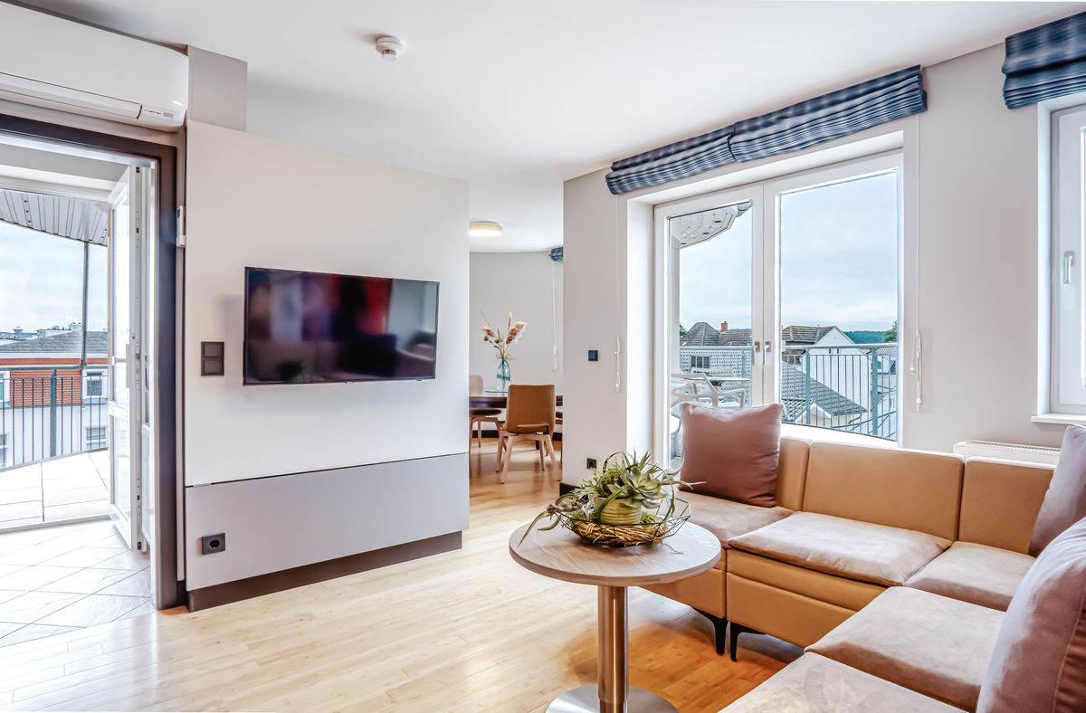 Ausstattung: Große Süd-West-Terrasse, Pantry-Küche mit Cerankochfeld, Mikrowelle, Geschirrspüler, Spüle und Geschirr, Kaffee- und Teestation mit Wasserkocher und Kapsel-Kaffeemaschine, Klimaanlage, Gas-Kamin, Flat-TV, Sitzgruppe, Minibar, Zimmersafe, Boxspringdoppelbett mit Leselampen, kostenfreies WLAN, Bad mit Dusche/WC, Fön, Kosmetikspiegel, Babybett möglichBitte beachten Sie, dass aufgrund der Individualität unseres Hauses nur Zimmerbeispiele dargestellt sind. Sie haben die Möglichkeit, eine Zimmerkategorie zu buchen, jedoch keine Zimmervariante oder Zimmernummer. Details in der Ausstattung können abweichen. Ihre Wünsche versuchen wir selbstverständlich bei Verfügbarkeit zu erfüllen.